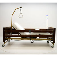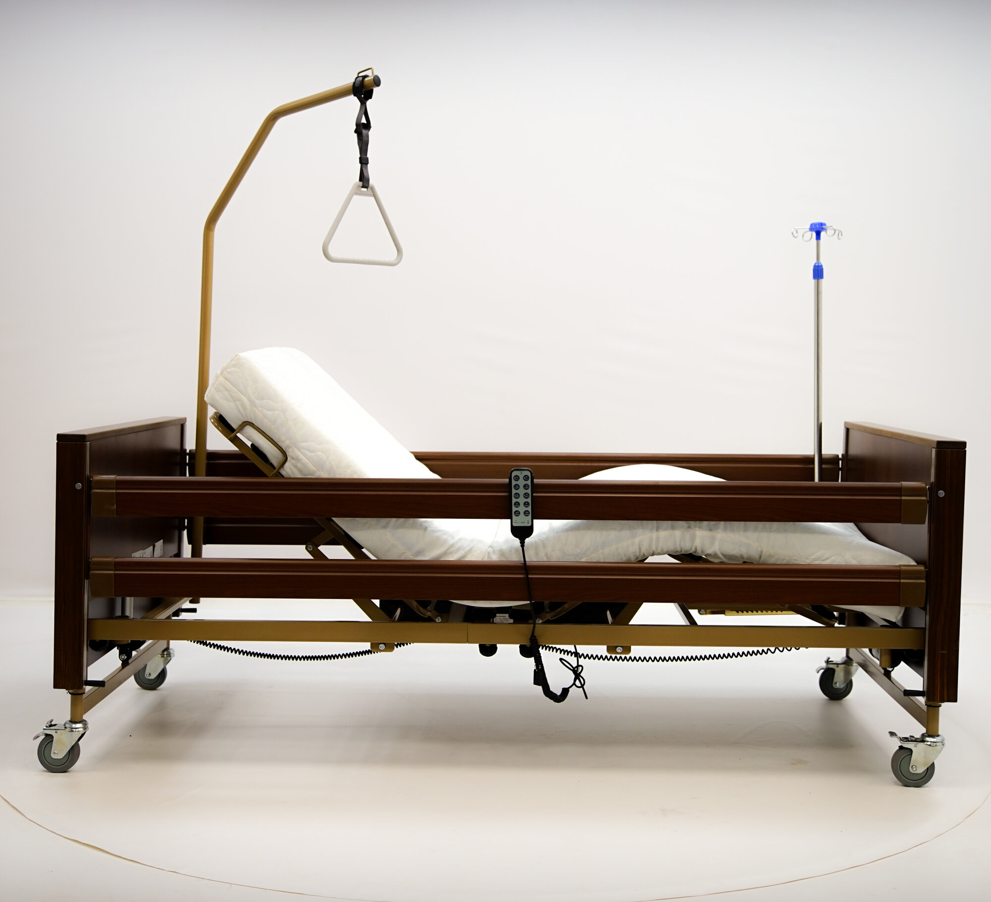 Медицинская многофункциональная кровать MET TERNA цвет "Венге". Кровать медицинская функциональная 4-х секционная, с электрическим приводом для регулировки высоты, спинной и тазобедренной (ножной) секции и углов TR/ATR, с пультом управления. Габариты ложа 1900*900.