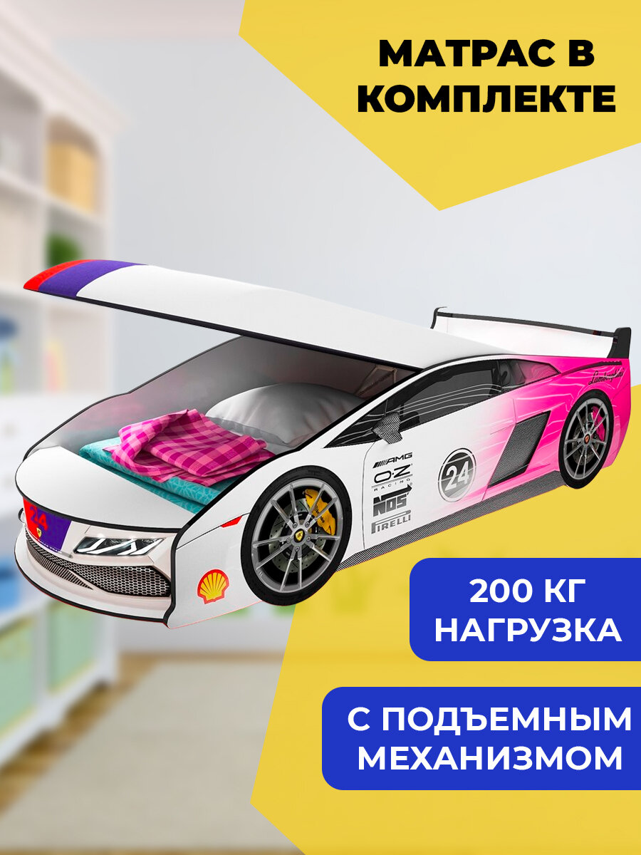 Купить Кровать-машина бело-розовая «Ламба» с матрасом с доставкой по всей России. Кровать-машина бело-розовая «Ламба» с матрасом: сравнение цен, характеристики, фото, актуальное наличие и цены.