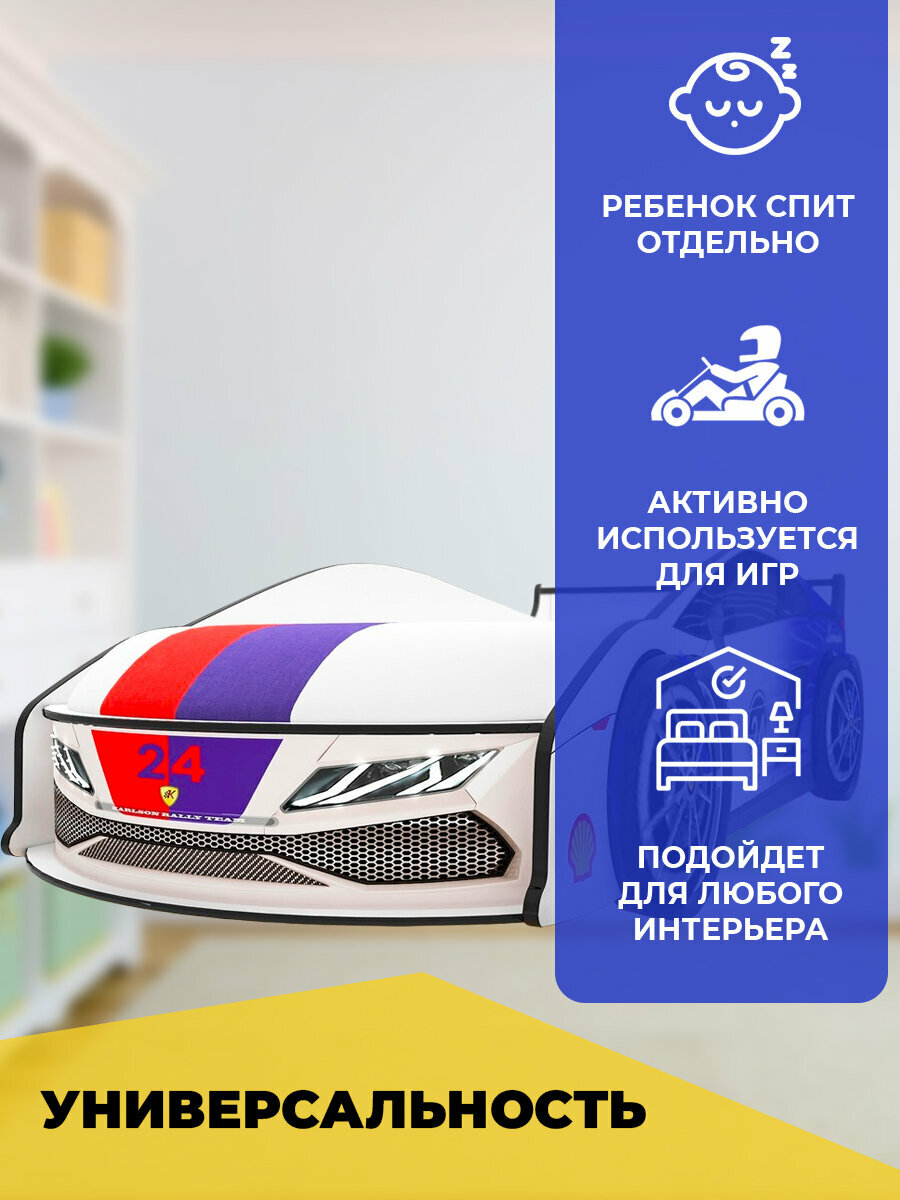 Купить Кровать-машина бело-синяя «Ламба» с матрасом с доставкой по всей России. Кровать-машина бело-синяя «Ламба» с матрасом: сравнение цен, характеристики, фото, актуальное наличие и цены.