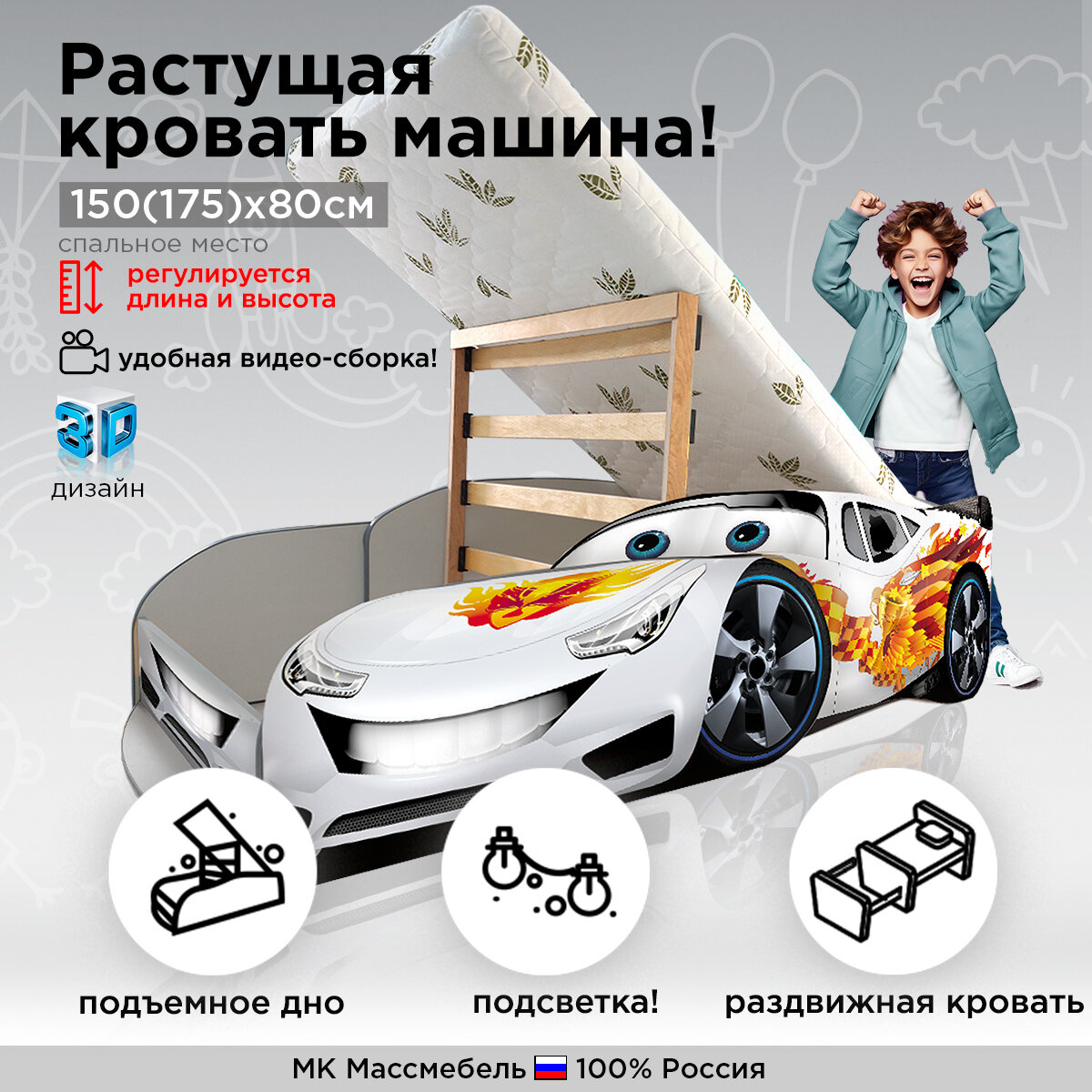 Кровать машина «Формула трансформер 4в1» детская кровать для мальчика Белая 155(180)/85/49см: сравнение цен, характеристики, фото, актуальное наличие и цены.