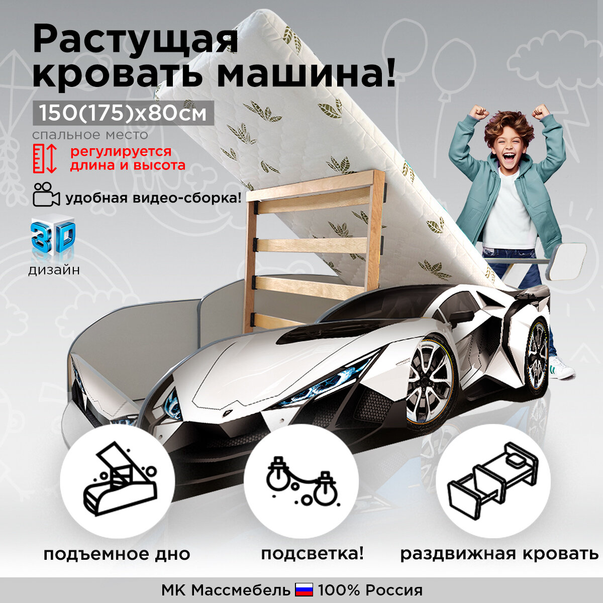 Кровать машина «Ламба трансформер 4в1» детская кровать для мальчика Белая 174(199)/85/49см: сравнение цен, характеристики, фото, актуальное наличие и цены.