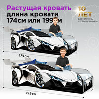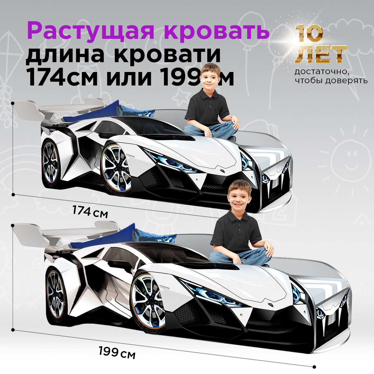 Купить Кровать машина «Ламба трансформер 4в1» детская кровать для мальчика Белая 174(199)/85/49см с доставкой по всей России.