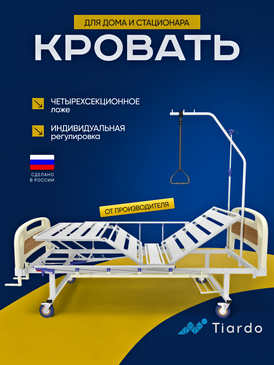 Купить Кровать медицинская Тиардо, 4В201, четырехсекционная, с инфузионной стойкой, вращающимися колесами с доставкой по всей России. Кровать медицинская Тиардо, 4В201, четырехсекционная, с инфузионной стойкой, вращающимися колесами: сравнение цен, характеристики, фото, актуальное наличие и цены.