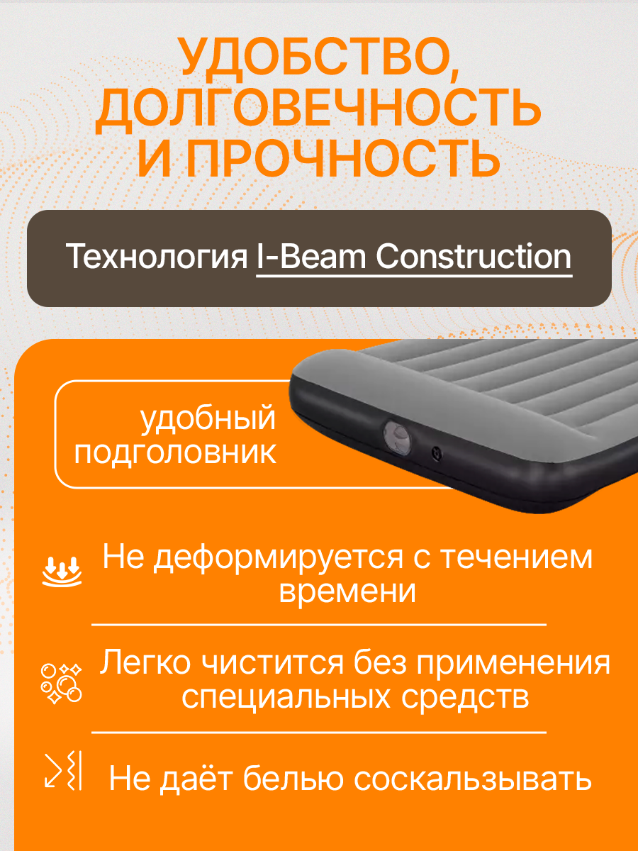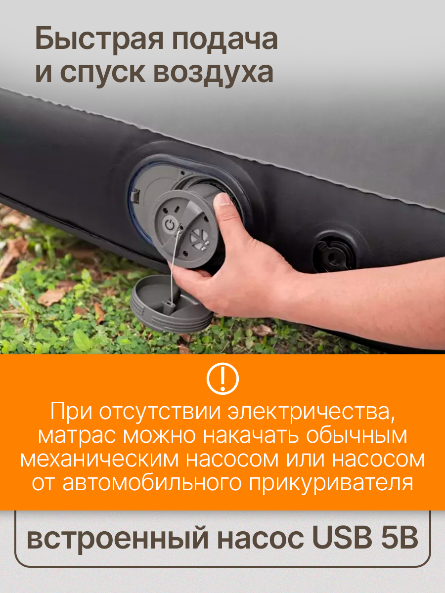 Надувная кровать Bestway 191х137х30см: комфорт и удобство на природе Надувная кровать Bestway станет отличным выбором для комфортного отдыха на природе. С ее помощью можно с легкостью организовать удобное спальное место, где бы вы ни находились. Встроенный насос USB 5В Встроенный насос USB 5В позволяет быстро и легко надуть и сдуть кровать, что делает ее удобной для использования на природе. Вам не придется тратить время на поиск насоса или переходника – все необходимое уже включено в комплект. Подходит для людей с разным весом Надувная кровать Bestway рассчитана на максимальную нагрузку до 300 кг, что делает ее подходящей для людей разного телосложения. Продольный каркас и флокирование Продольный каркас обеспечивает прочность и стабильность кровати, а флокирование поверхности предотвращает скольжение и обеспечивает комфортное использование. Комплектация и уход В комплекте с кроватью идет ремкомплект, который поможет вам быстро и легко устранить возможные повреждения. Для сохранения качества и продления срока службы кровати рекомендуется регулярно проводить ее чистку и обслуживание. Выбирая надувную кровать Bestway 191х137х30см, вы получаете комфортное и удобное спальное место для отдыха на природе, которое будет радовать вас своим качеством и функциональностью.