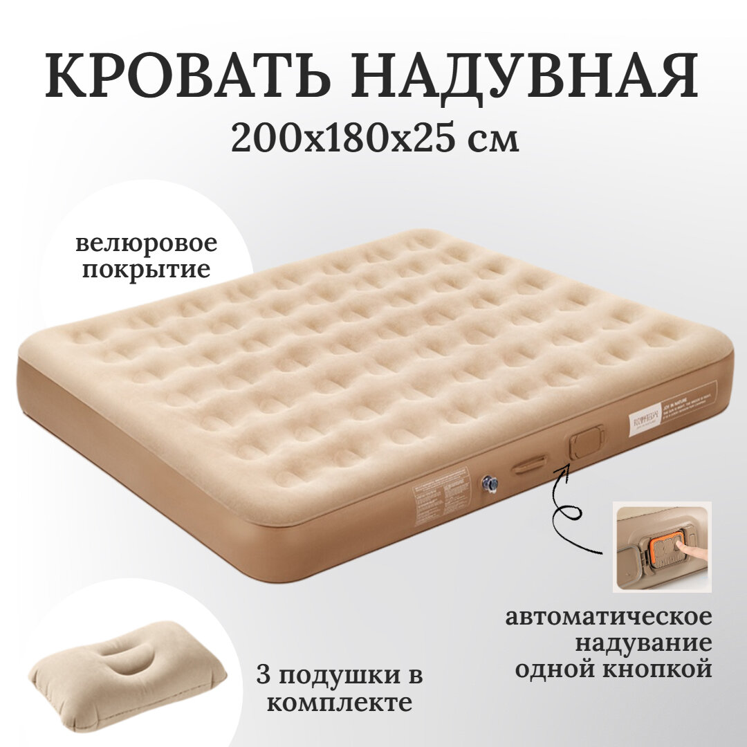 Кровать надувная автоматическая, трехместная, размер 200х180х25 см + три подушки: сравнение цен, характеристики, фото, актуальное наличие и цены.