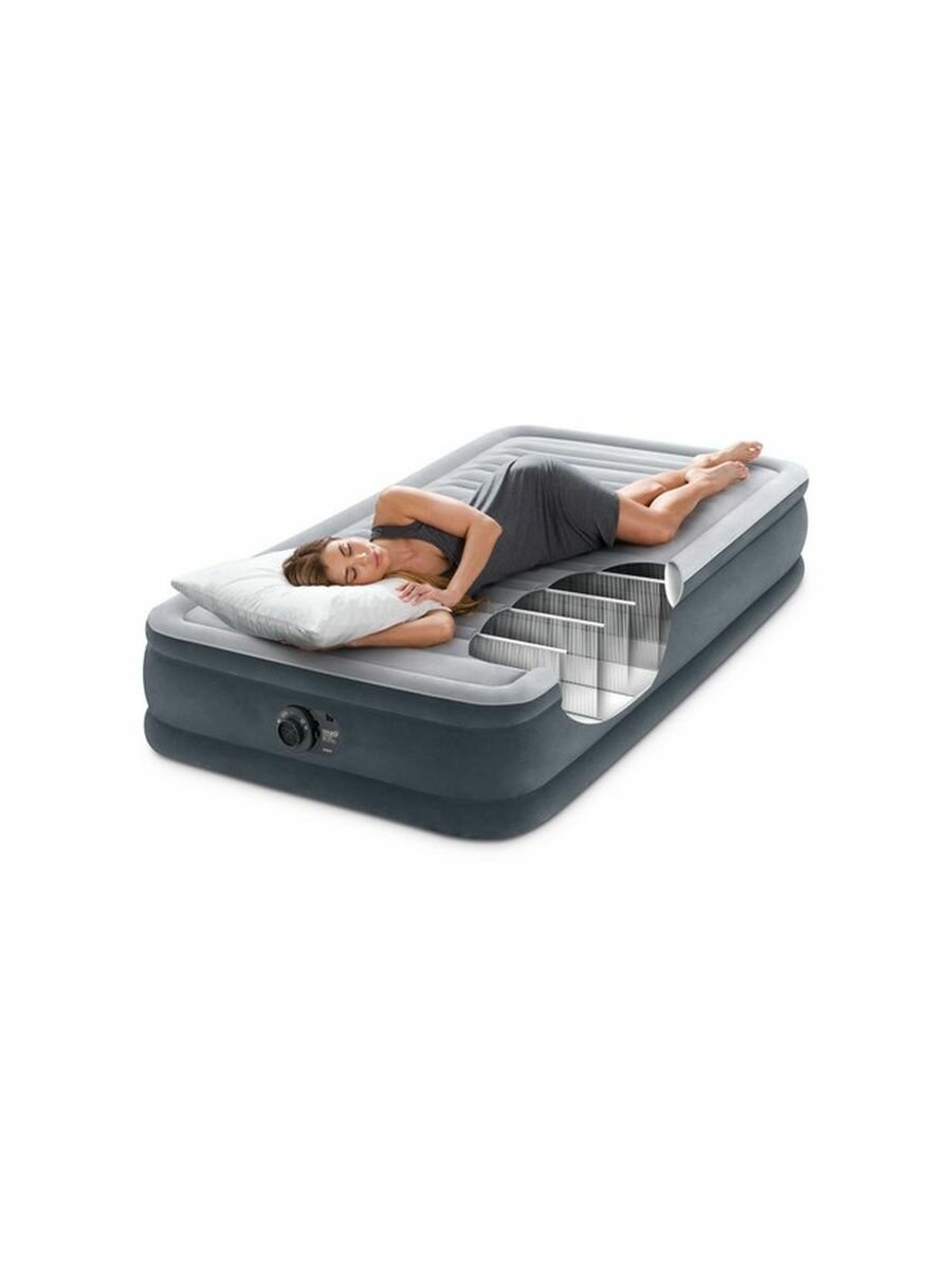 Кровать надувная Comfort-Plush 99х191х33см со встроенным электрическим насосом INTEX 67766: сравнение цен, характеристики, фото, актуальное наличие и цены.
