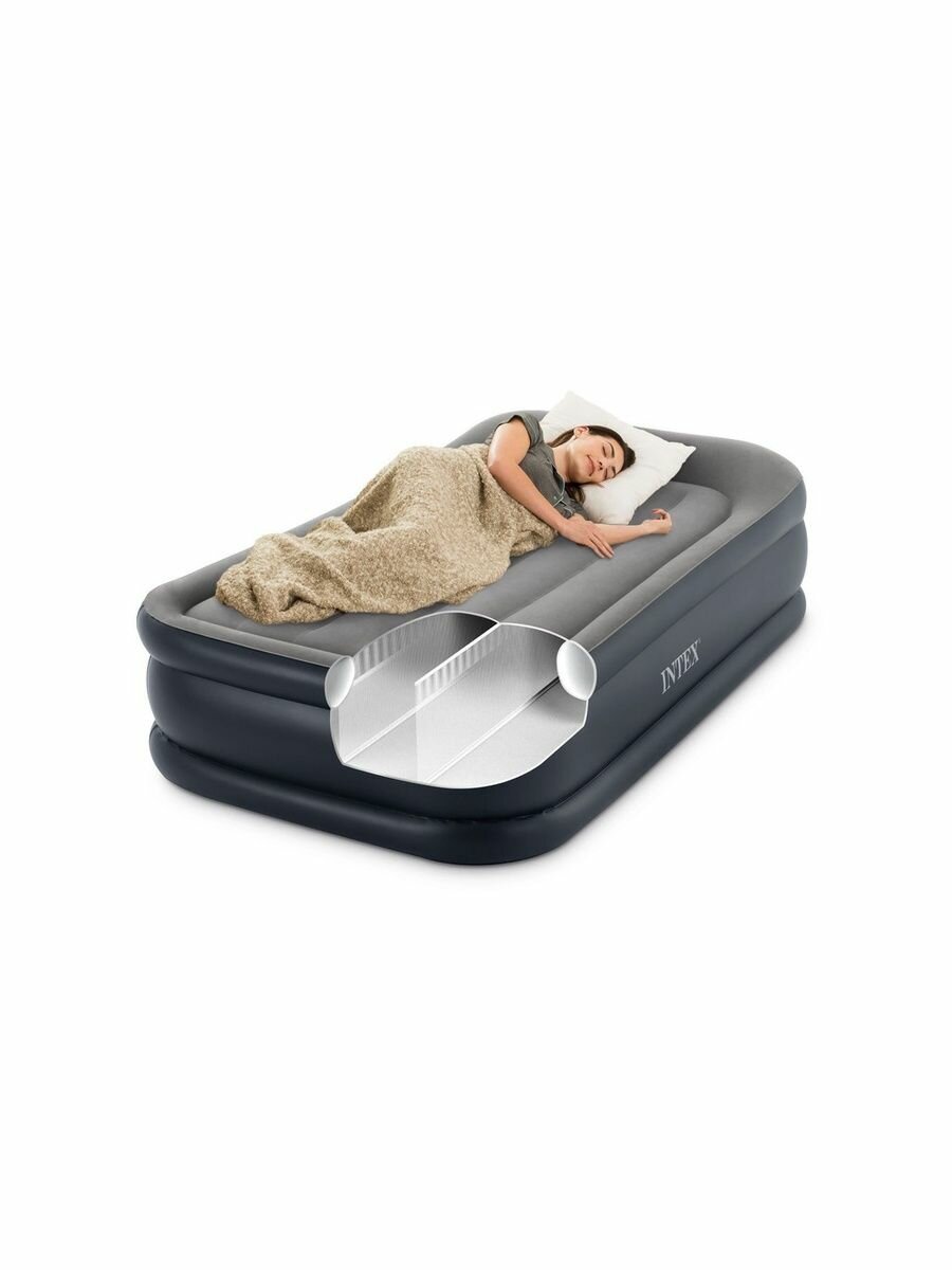 Кровать надувная Deluxe Pillow 99х191х42см со встроенным электрическим насосом INTEX 64132: сравнение цен, характеристики, фото, актуальное наличие и цены.