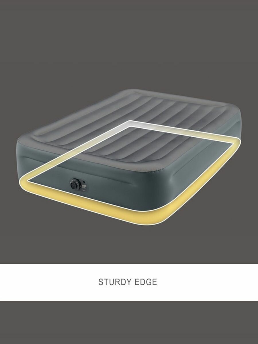 Кровать надувная Essential Rest Fiber-Tech - Удобство использования — встроенный электрический насос позволяет быстро наполнить кровать без усилий. - Прочная конструкция — современный материал Fiber-Tech обеспечивает долговечность и надежность даже при частом применении. - Комфортный размер — широкая поверхность идеально подходит для полноценного отдыха или ночевки. - Эстетичный дизайн — спокойные тона серого цвета гармонично вписываются в любой интерьер. - Легкая транспортировка — компактная упаковка и малый вес делают кровать мобильной для хранения и перевозки.