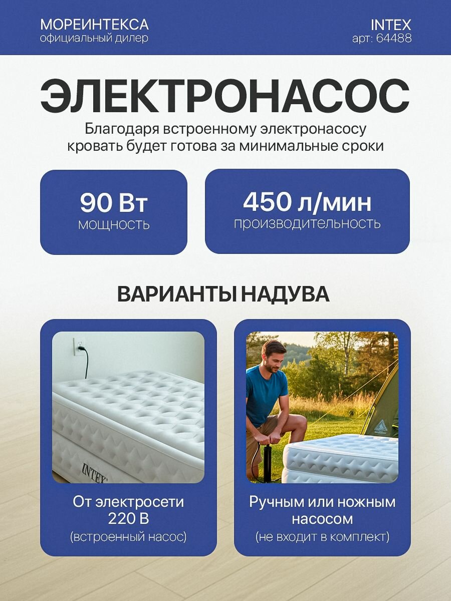 Купить Кровать надувнаяIntex 64488 99х191х51см «Supreme» встроенным насосом 220В, до 136кг с доставкой по всей России. Кровать надувнаяIntex 64488 99х191х51см «Supreme» встроенным насосом 220В, до 136кг: сравнение цен, характеристики, фото, актуальное наличие и цены.