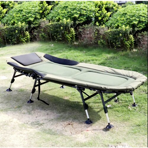 Кровать раскладушка для карповой рыбалки это незаменимый помощник в походе или на отдыхе на природе. Мягкая подушка, восемь независимо регулируемых по высоте ножек с широкими опорами.
