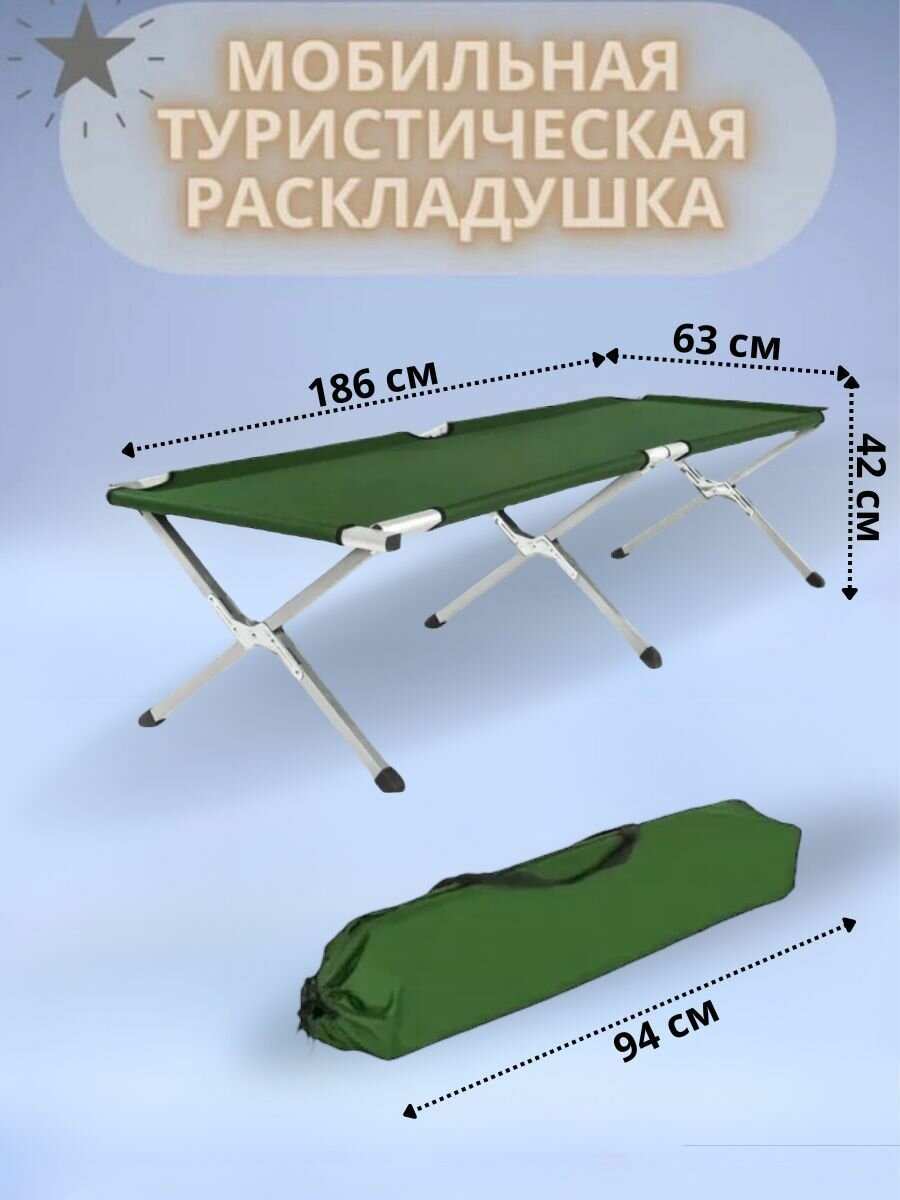 Кровать раскладушка туристическая, кемпинговая походная кровать 190х63х42 см, цвет зелёная: сравнение цен, характеристики, фото, актуальное наличие и цены.