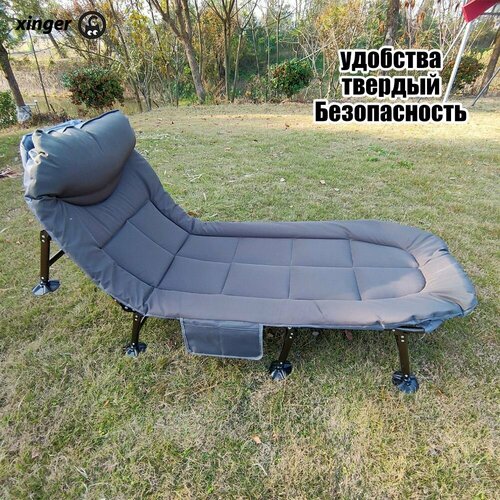 Может использоваться в качестве дачной мебели. Раскладушка для сна отлично обеспечивает поддержку всего тела и за счет мягкой ткани, не нужно докупать дополнительно коврики и матрасы. Размеры шезлонга в разложенном виде: 190х70х30 см. Размеры в сложенном виде: 75х70х20 см. Туристическая кровать раскладушка рыболовная. А также карповая раскладушка для туристических поездок и кемпинговых лагерей, как дополнительная раскладная кровать лежанка для палатки или спальное место на даче станет идеальным подарком к летнему сезону для кого угодно и на любой праздник. Идеальное приобретение для туристов