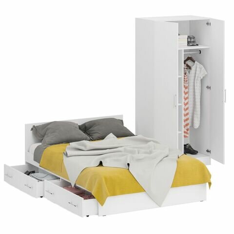 Купить Кровать с ящиками 1400 + Шкаф 2-х створчатый Стандарт, цвет белый с доставкой по всей России. Кровать с ящиками 1400 + Шкаф 2-х створчатый Стандарт, цвет белый: сравнение цен, характеристики, фото, актуальное наличие и цены.