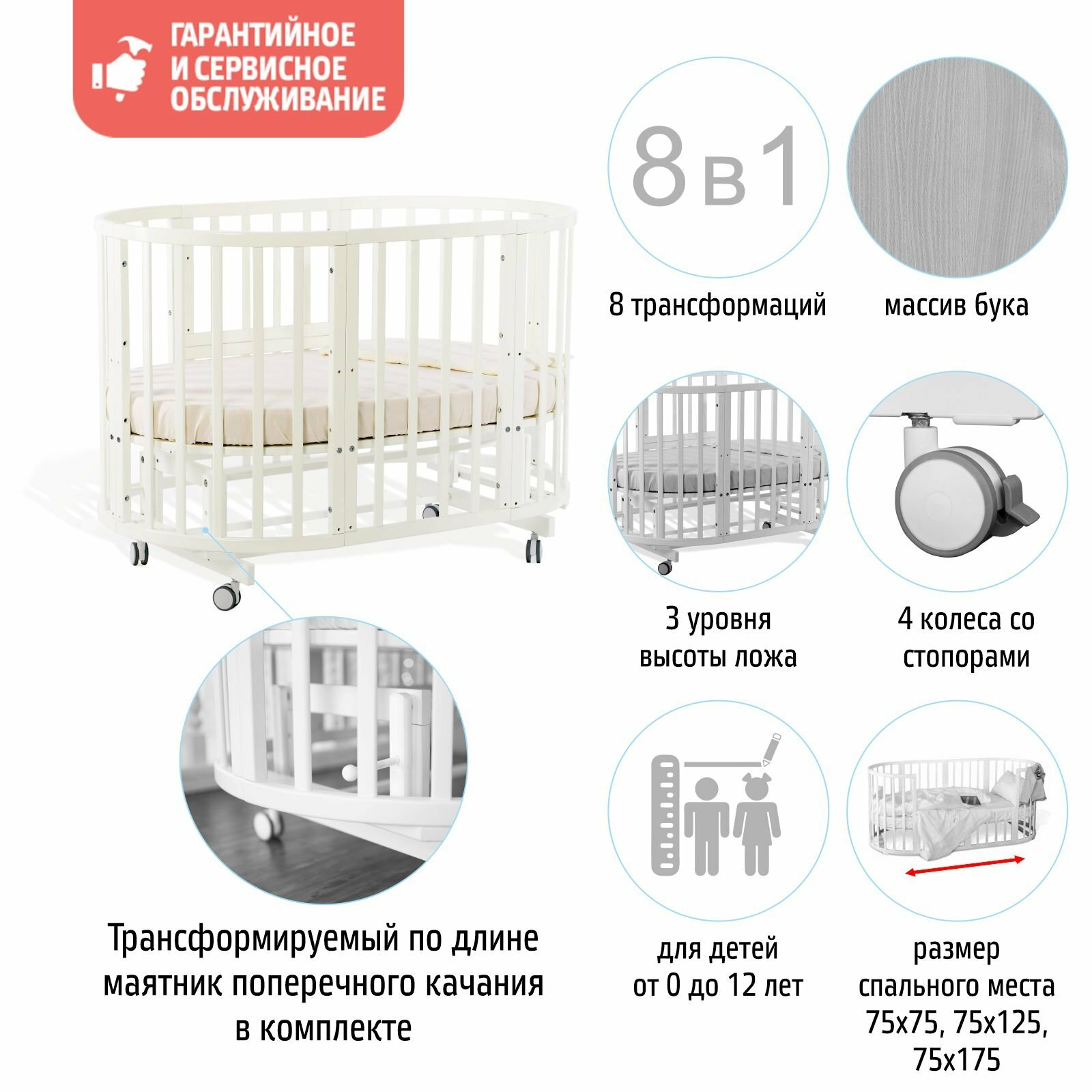 Кровать-трансформер детская Nuovita «Nido Magia», маятниковая, овальная, бук, ваниль: сравнение цен, характеристики, фото, актуальное наличие и цены.
