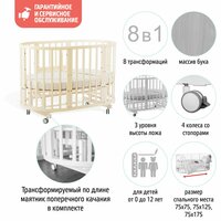 | Дополнительная информация | 5 в 1: колыбель, детская кровать, манеж, диван (если приобрести дополнительные детали, то можно трансформировать в пеленальный стол, кресла и стол, подростковую кровать), размер спального места колыбели 76 x 76 см |