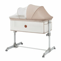 Кроватка детская для новорожденного Dearest приставная с матрасом, с москитной сеткой, с маятником, бежевый
