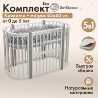 Купить Кроватка детская для новорожденных, трансформер SoftSpace Eco 5 в 1, с матрасом 85*60 см, кроватка детская 120х60 см, люлька 85х60 см, белый с серыми стойками с доставкой по всей России.