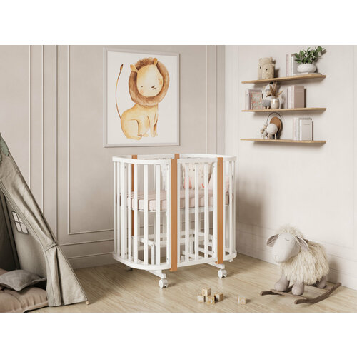 Кроватка оснащена колесами, что обеспечивает удобство при перемещении по комнате. Это особенно актуально, когда ребенок подрастет и начнет самостоятельно вставать и ходить.