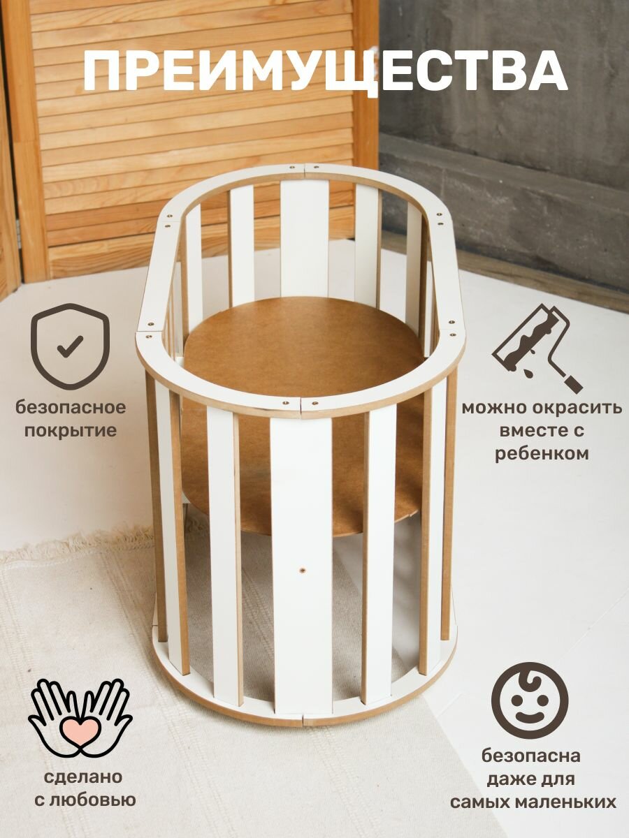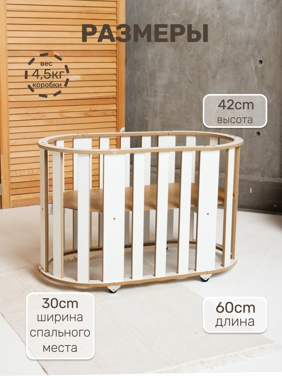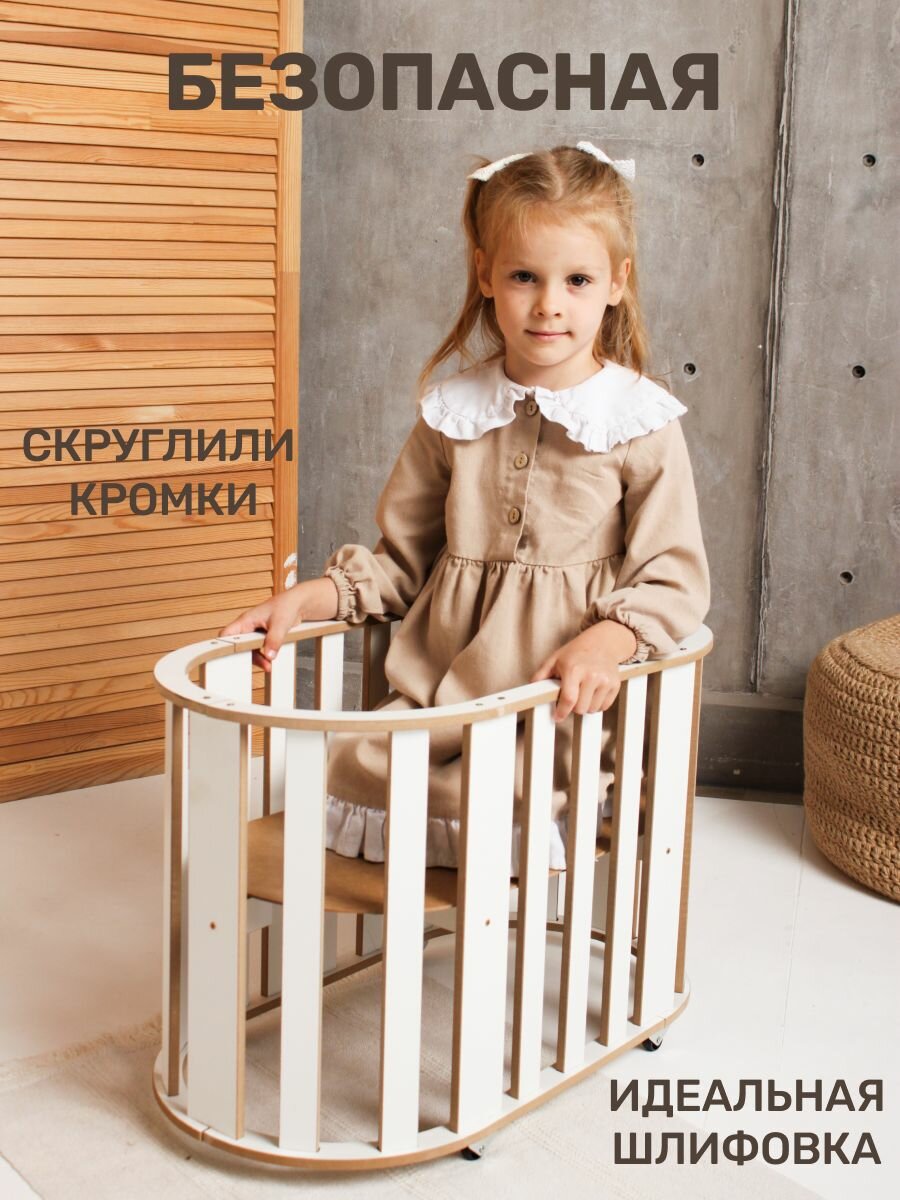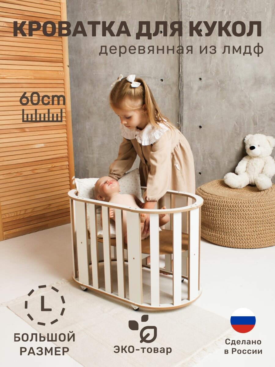 Кроватка для кукол от коллекции BEAR_CUD-мечта любой маленькой принцессы. Это прекрасный подарок ко дню рождения, на новый год а также на любой другой праздник. Она прекрасно впишется в ваш интерьер. Кроватка выполнена из ламинированного МДФ класса Е1. Все наши материалы и продукция прошли сертификацию по стандартам еаэс. Размер спального места 60х30см, высота 42см. Качалка не имеет острых углов и заноз. Она максимально практична и удобна в использовании, в комплекте идет пошаговая инструкция, поэтому кроватка очень легко собирается. Также к кроватке поставляется матрасик, который вы можете приобрести отдельно в нашем профиле.