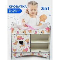 Купить Кроватка для кукол до 45 см «Мишки» со шкафом и полками, 2-х сторонняя с доставкой по всей России. Кроватка для кукол до 45 см «Мишки» со шкафом и полками, 2-х сторонняя: сравнение цен, характеристики, фото, актуальное наличие и цены.