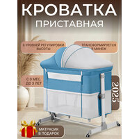 Кроватка для новорожденного 2 в 1 Dearest детская, приставная с маятником, колыбель, манеж, с матрасиком 2025, голубая: сравнение цен, характеристики, фото, актуальное наличие и цены.