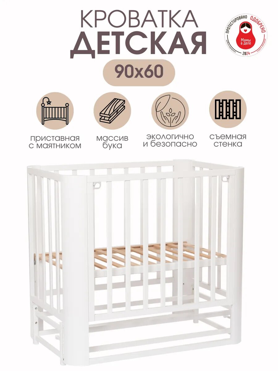 Приставная кроватка для новорожденного Mr Sandman Sandee - это высокое качество детской мебели для дома из дерева, широкий функционал, комфорт и абсолютная безопасность для детей до 1,5-2 лет. У кровати закруглены углы и края, тщательно рассчитано безопасное расстояние между рейками. Это детская кроватка трансформер: может использоваться как колыбель, люлька, качалка. В комплекте с кроваткой идут ремни, которые крепятся к взрослой кровати и обеспечат максимальную безопасность малышу, а маме не придется вставать ночью для кормления. Размер спального места 90х60 см. Для детской кровати с бортиком подойдет матрас из этой же коллекции и комплект постельного белья. Кроватка для младенцев может использоваться как классическая колыбель.