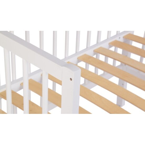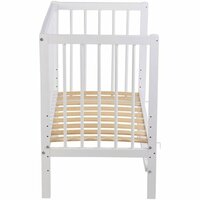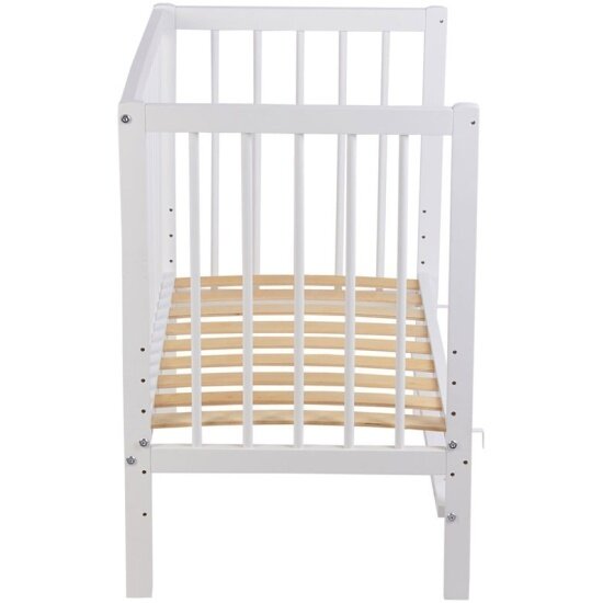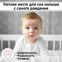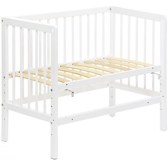 Фея Кроватка детская приставная Лея 100 Приставная кровать Фея 100 4 в 1 позволяет быть ближе к ребенку, облегчая процесс ухода и кормления в течение ночи. Классическая кроватка с ортопедическом основанием, которое имеет 5 уровней высоты от пола. Особенности: Изделие покрыто высококачественныи лакокрасочным покрытием. Можно использовать для двойни, достаточно сдвинуть две кроватки вместе. Изготовлено полностью из натурального материала: массив березы Боковое ограждение и колеса в комплект не входят. Отличается от приставной кроватки Polini Simple 100 формой верхней царги спинки, колеса в комплект не входят. Габариты: Размер матраса для кровати 90х50 см. Расстояние между рейками боковины: 5.7 см, расстояние между рейками спинки: 6.4 см. Размер изделия общий: (ДхШхВ) 94.8х54х79.5 см.