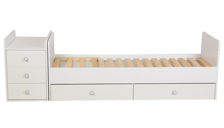 Кроватка Фея 1100 трансформер с комодом, поперечный маятник Белый