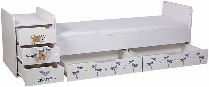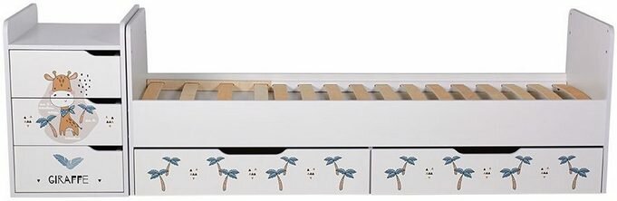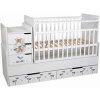 Кроватка Фея 1100 трансформер с комодом, поперечный маятник Белый Жирафик