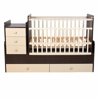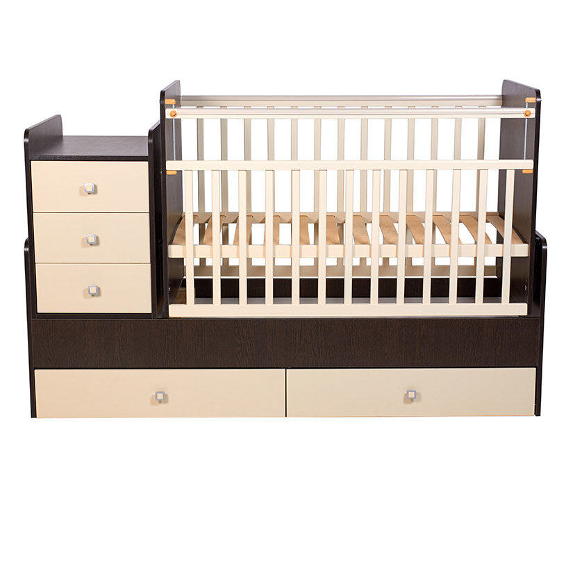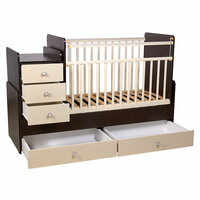 Кроватка детская - трансформер «Фея 1100» с пеленальным комодом и механизмом качания. Кроватки-трансформеры подходят в первую очередь, для квартир с небольшой площадью. Под кроваткой 2 выдвижных ящика, позволяющих удобно разместить вещи и игрушки малыша на небольшом пространстве.