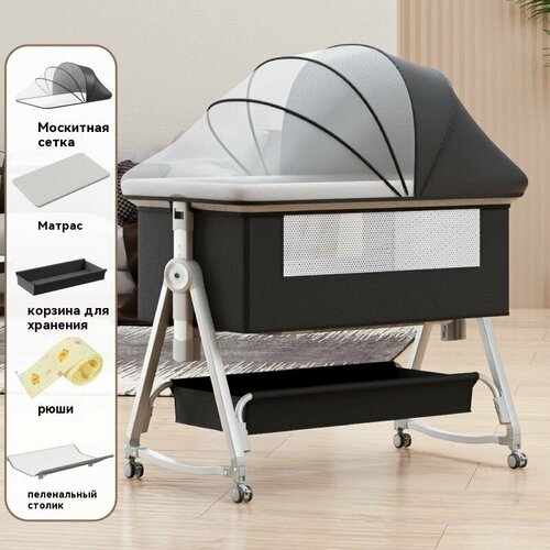 Кроватка Техноидеал, подъемный механизм, маятниковое качание, темно-серый, 92x55x81 см: сравнение цен, характеристики, фото, актуальное наличие и цены.