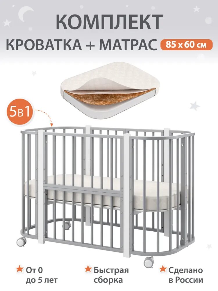 Кроватка трансформер, Лёвушка-1 с матрасом 85х60 см в комплекте, Берёза, цвет серый/белый, 120х60 см, 85х60: сравнение цен, характеристики, фото, актуальное наличие и цены.