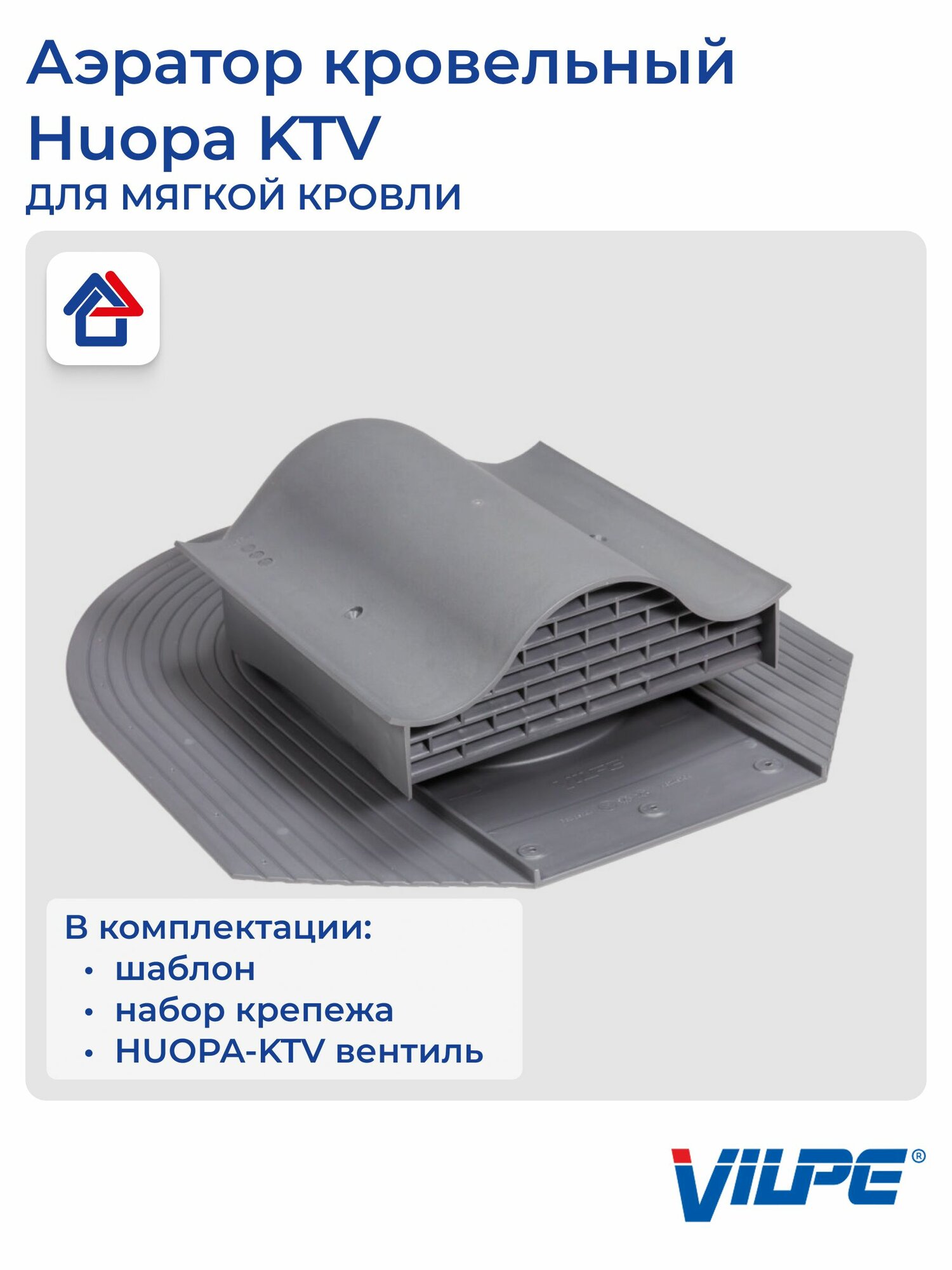 Кровельный вентиль Huopa KTV (без адаптера) Vilpe, Вилпе, серый (RR23, RAL 7015): сравнение цен, характеристики, фото, актуальное наличие и цены.