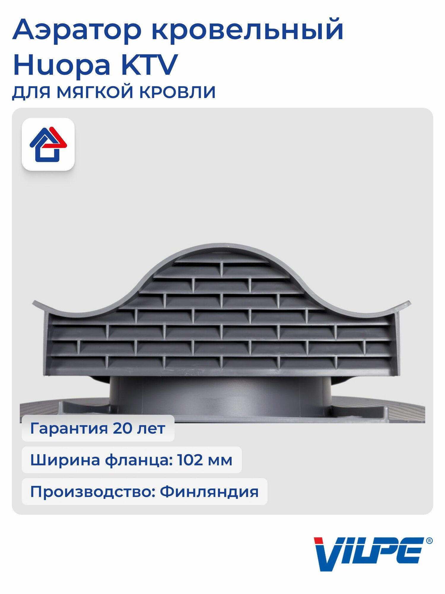 Купить Кровельный вентиль Huopa KTV (без адаптера) Vilpe, Вилпе, серый (RR23, RAL 7015) с доставкой по всей России.
