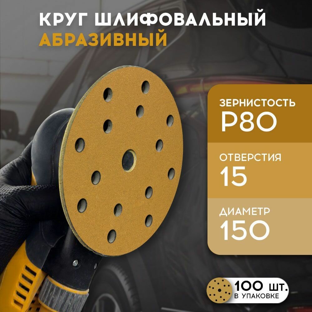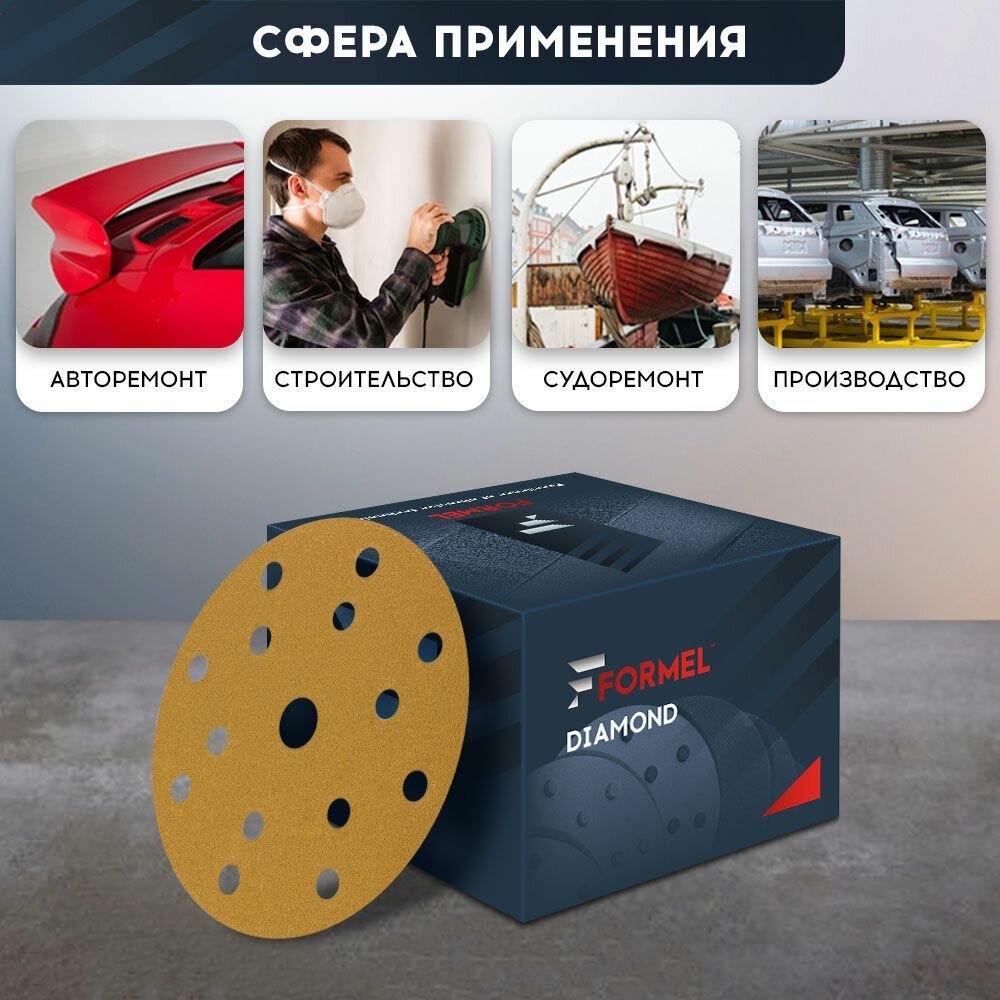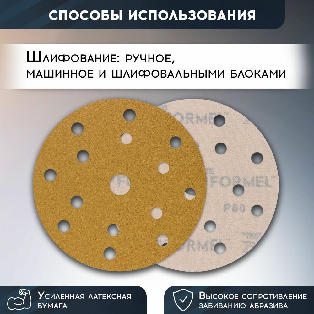 Набор 100 шт, круг шлифовальный абразивный 150 мм, Р80, 15 отверстий, бумажная основа / FORMEL DIAMOND / наждачный диск на липучке: сравнение цен, характеристики, фото, актуальное наличие и цены.