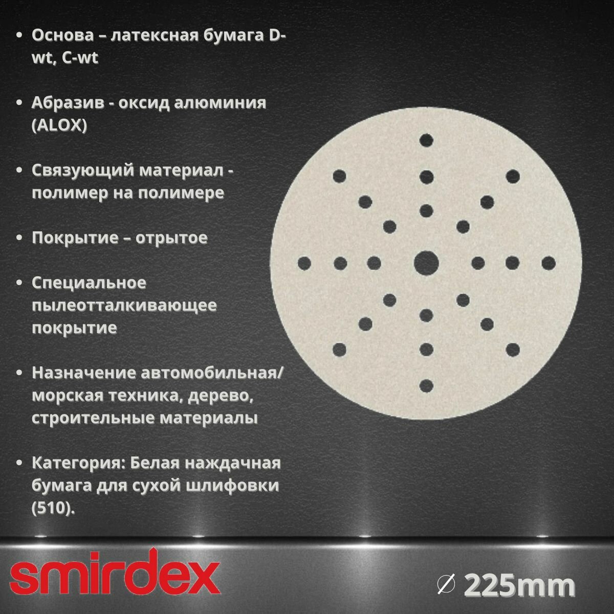 Купить Круг абразивный SMIRDEX 510 White, D225мм, 25 отверстий (10шт.) P80 с доставкой по всей России. Круг абразивный SMIRDEX 510 White, D225мм, 25 отверстий (10шт.) P80: сравнение цен, характеристики, фото, актуальное наличие и цены.