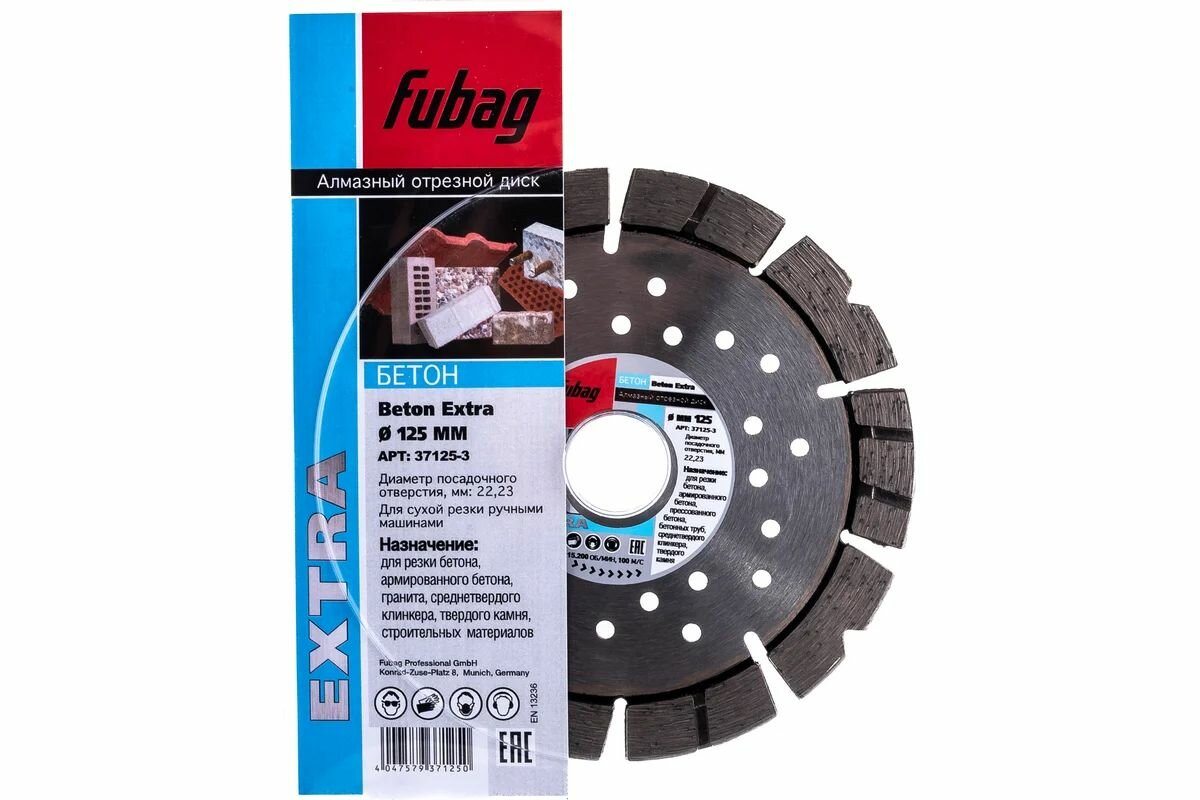 Круг алмазный по бетону FUBAG Beton Extra 125 x 22,2 мм (37125-3): сравнение цен, характеристики, фото, актуальное наличие и цены.