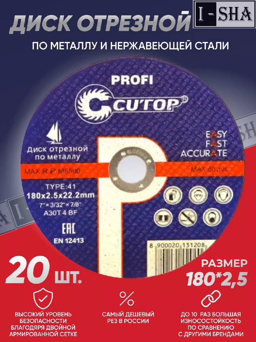 Купить Диск отрезной по металлу 180х2.5х22.2 мм Cutop, 20 шт с доставкой по всей России. Диск отрезной по металлу 180х2.5х22.2 мм Cutop, 20 шт: сравнение цен, характеристики, фото, актуальное наличие и цены.
