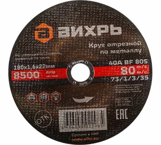 Купить Круг отрезной по металлу (180х22х1.6 мм) Вихрь 8 с доставкой по всей России. Круг отрезной по металлу (180х22х1.6 мм) Вихрь 8: сравнение цен, характеристики, фото, актуальное наличие и цены.