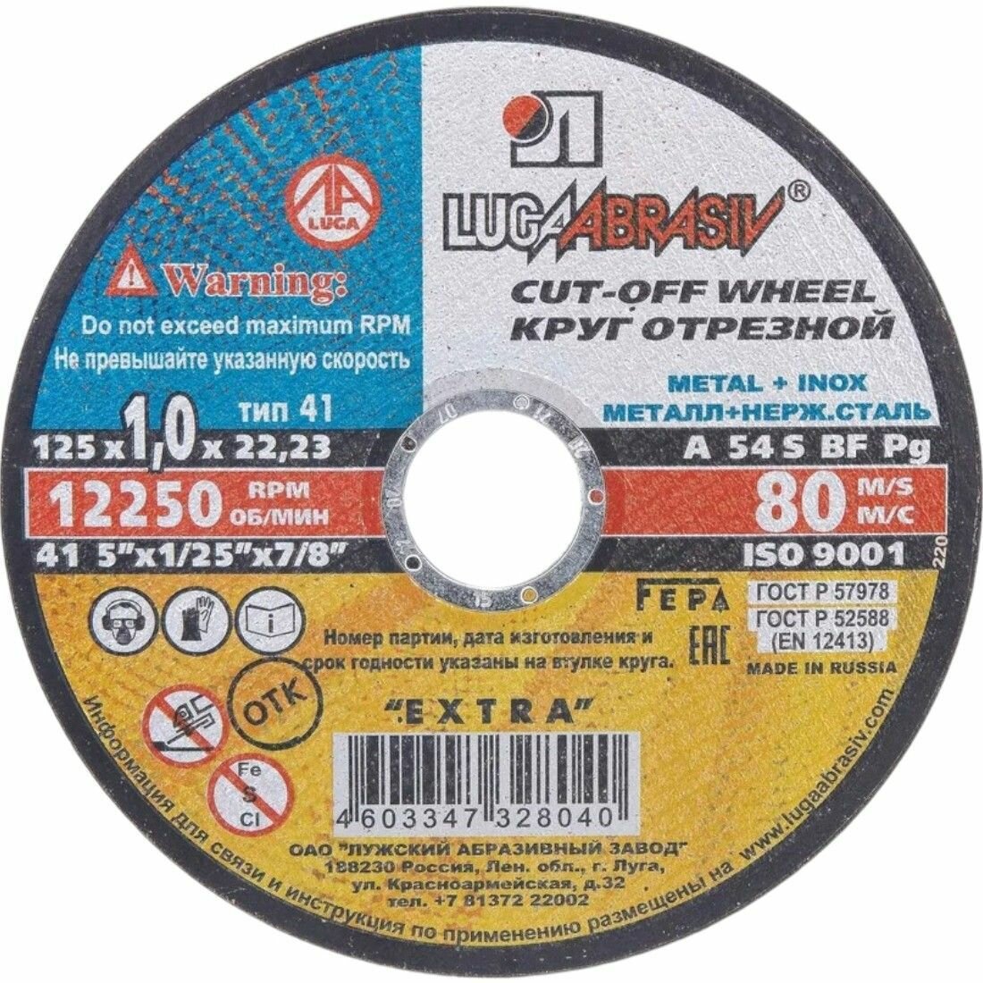 Круг отрезной по металлу и нержавеющей стали (диск отрезной) 100 шт. (125х1.0х22 мм; A 54 S BF 80; 14А БУ) Луга D11001252210000: сравнение цен, характеристики, фото, актуальное наличие и цены.