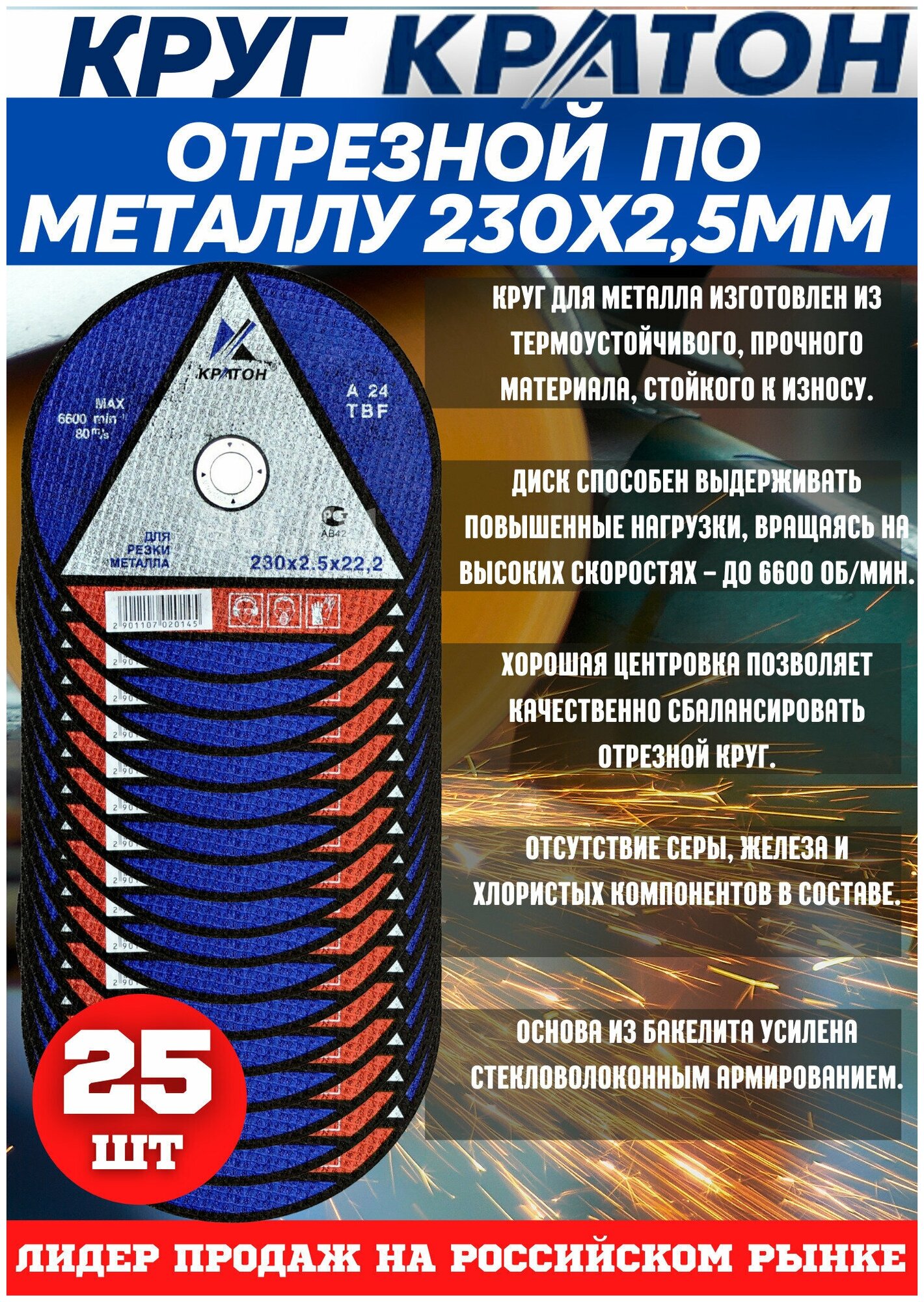 Купить Круг отрезной по металлу кратон 230*2,5*22,2мм упаковка 25шт с доставкой по всей России. Круг отрезной по металлу кратон 230*2,5*22,2мм упаковка 25шт: сравнение цен, характеристики, фото, актуальное наличие и цены.