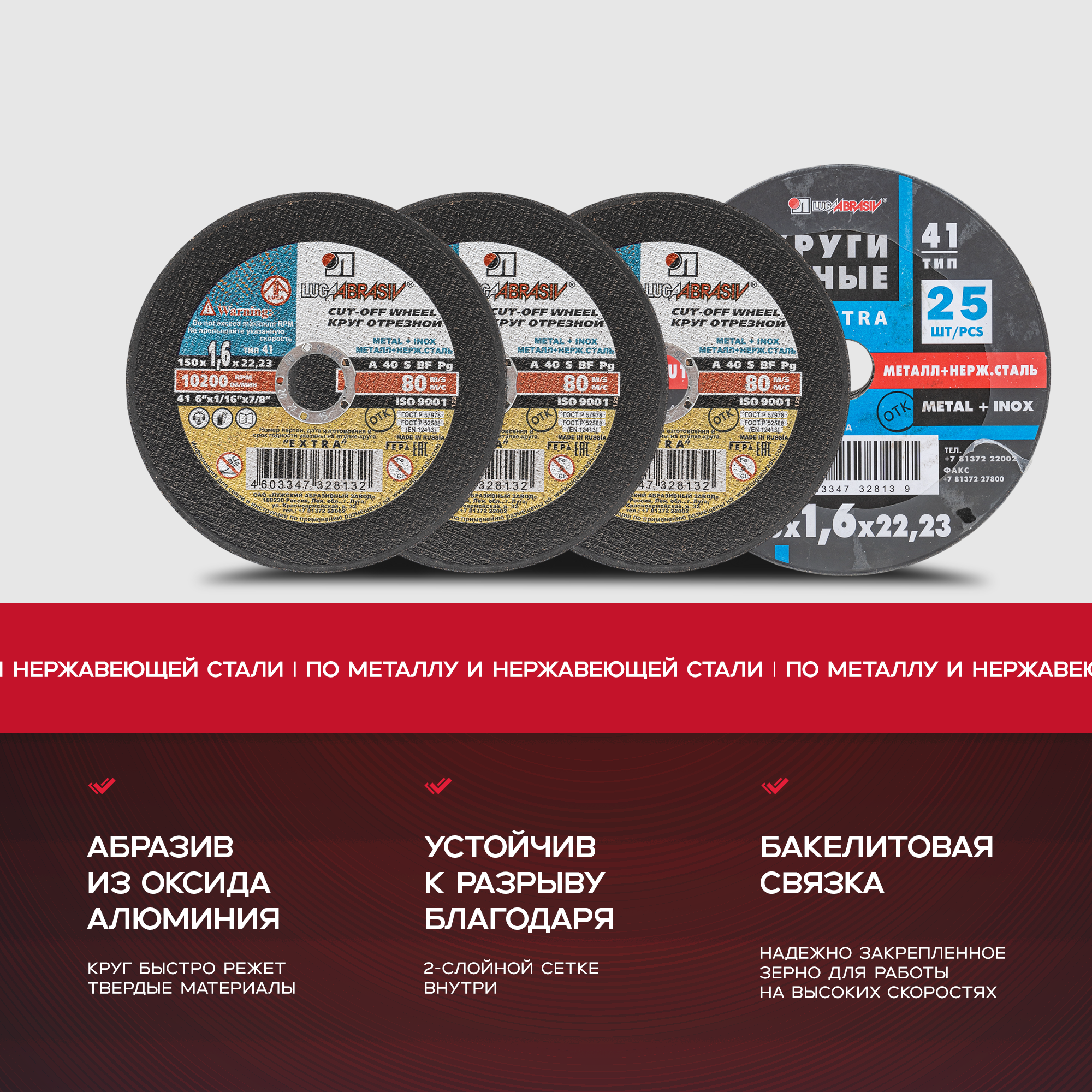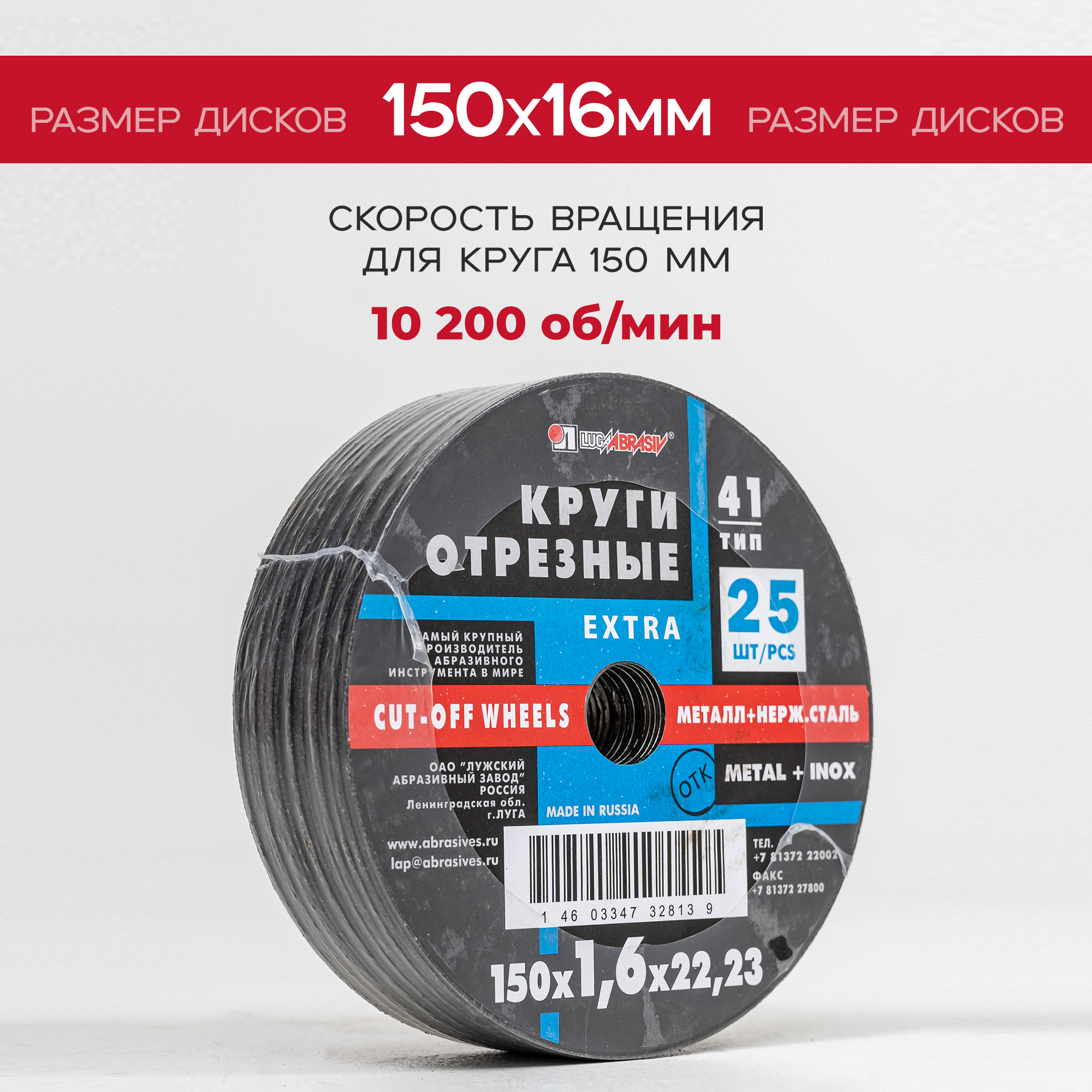 Отрезные круги по металлу от российского производителя компании Луга (Лужский абразивный завод) – предназначены для широкого применения как расходный инструмент для углошлифовальных ручных, так и стационарных машин для резки металла.