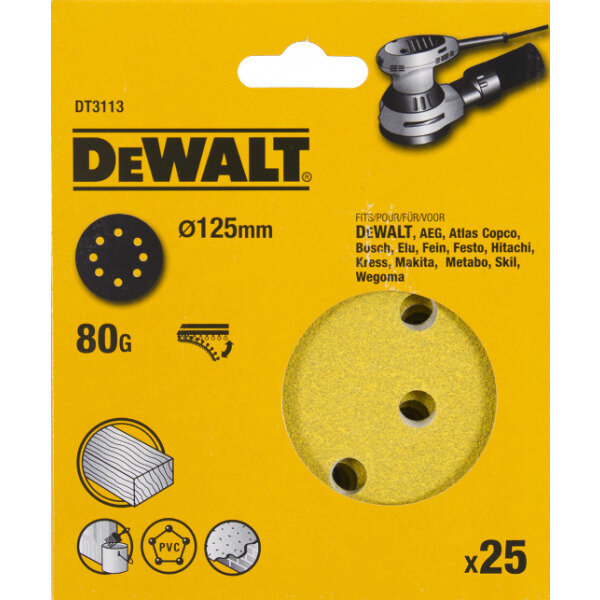 Купить Шлифовальные круги DEWALT DT3113, 125 мм, 8 отверстий, 80G, 25 шт. с доставкой по всей России. Шлифовальные круги DEWALT DT3113, 125 мм, 8 отверстий, 80G, 25 шт.: сравнение цен, характеристики, фото, актуальное наличие и цены.