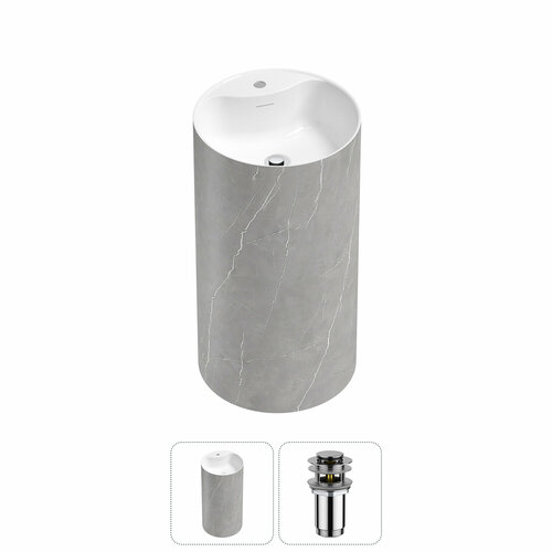 Круглая напольная раковина для ванной Wellsee Chalice Perfection 20213046R в наборе 2 в 1: напольная отдельностоящая раковина моноблок (чаша белый глянец, стенки матовый серый мрамор), донный клапан (цвет хром): сравнение цен, характеристики, фото, актуальное наличие и цены.
