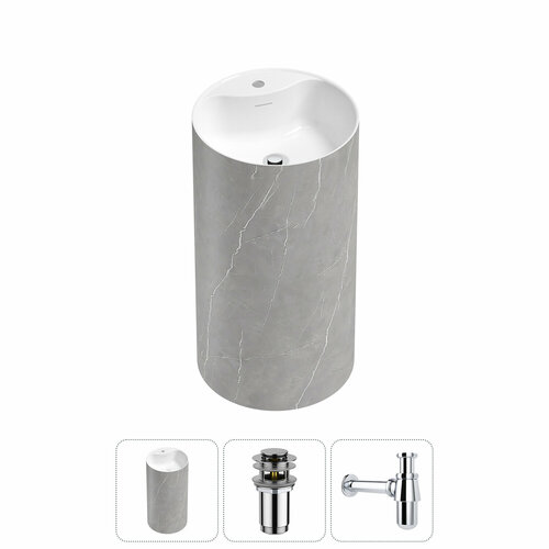 Купить Круглая напольная раковина для ванной Wellsee Chalice Perfection 20213049R в наборе 3 в 1: напольная отдельностоящая раковина моноблок (чаша белый глянец, стенки матовый серый мрамор), донный клапан, сифон (цвет хром) с доставкой по всей России.