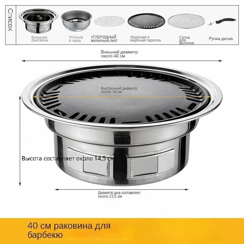 Круглый гриль для барбекю в корейском стиле на открытом воздухе, ветрозащитный, на древесном угле,40cm: сравнение цен, характеристики, фото, актуальное наличие и цены.