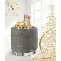 Круглый пуфик из велюра букле на серебристом основании для прихожей, гостиной, спальни и туалетного столика