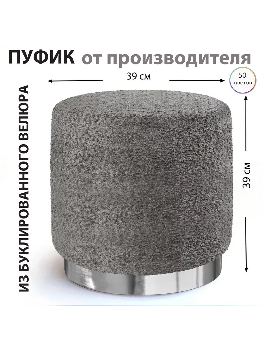 Круглый пуфик из велюра букле на серебристом основании для прихожей, гостиной, спальни и туалетного столика: сравнение цен, характеристики, фото, актуальное наличие и цены.