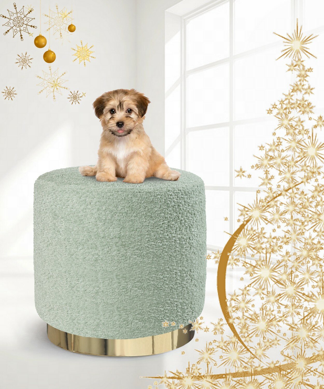 Купить Круглый пуфик на золотом основании для прихожей, гостиной, спальни и туалетного столика с доставкой по всей России.