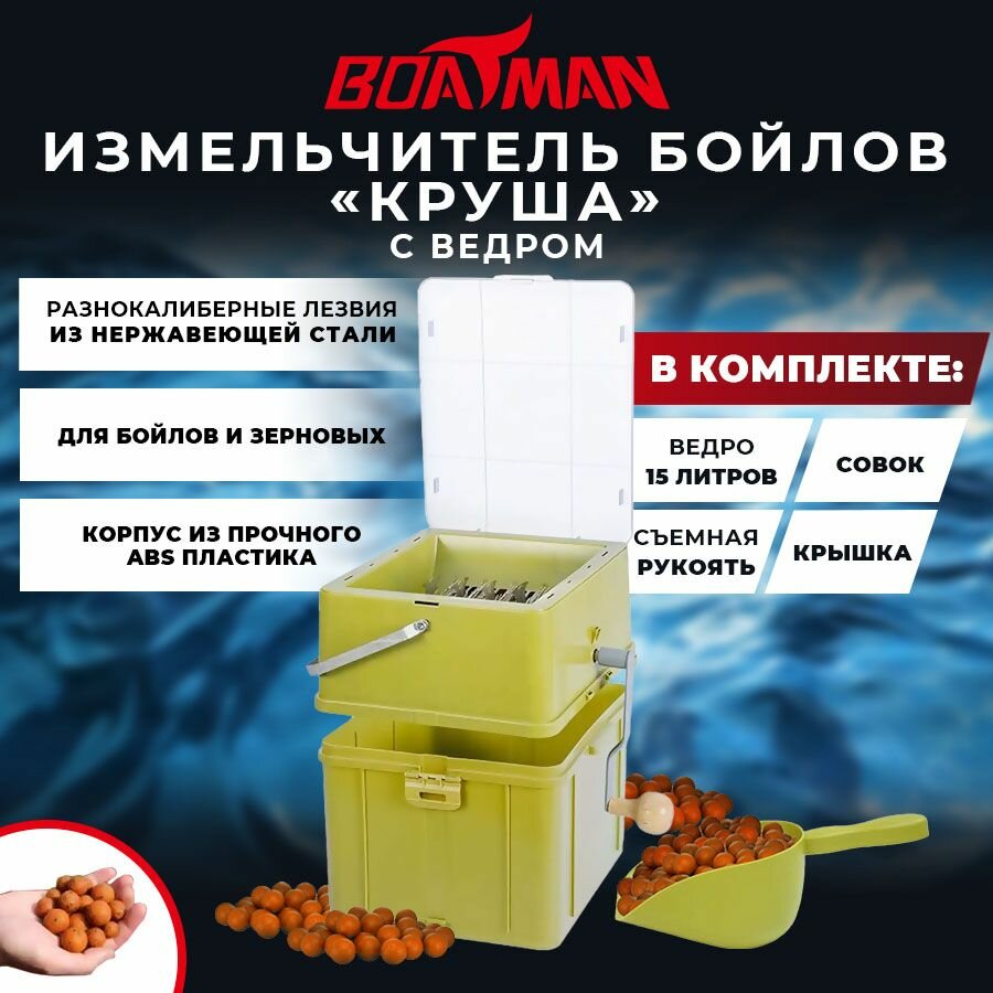 Измельчитель бойлов «круша» Boatman идеально подходит для простого и быстрого создания прикормочных смесей для сподов, спомбов и завоза корабликом. Измельчает фракцию для привлечения рыбы и выделения насадочного бойла на прикормочном столе. Прочные лезвия из нержавеющей стали обеспечивают надежность и высокую производительность.